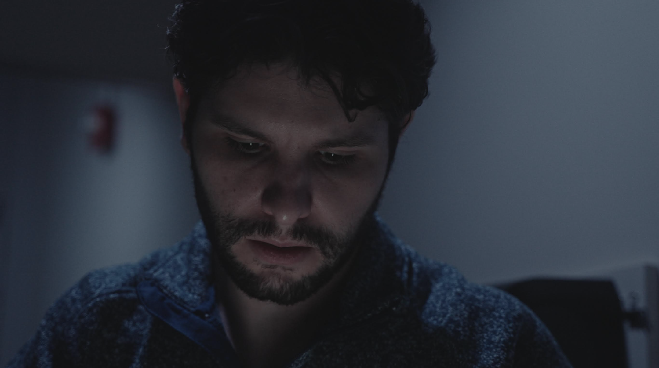 The bathroom setting actually came from the writer and main character, Tyler. It’s a space where he’s often found himself struggling in real life, so it just made sense. We also wanted to intentionally keep his OCD more hidden and internal. Visually, he looks like any other person stepping away mid dinner, but inside, he’s spiraling. That quiet contrast was important, because OCD often operates in silence. We don’t know who he’s with at the restaurant or why he’s there, but what’s clear is that he’s trying to keep this battle unseen.