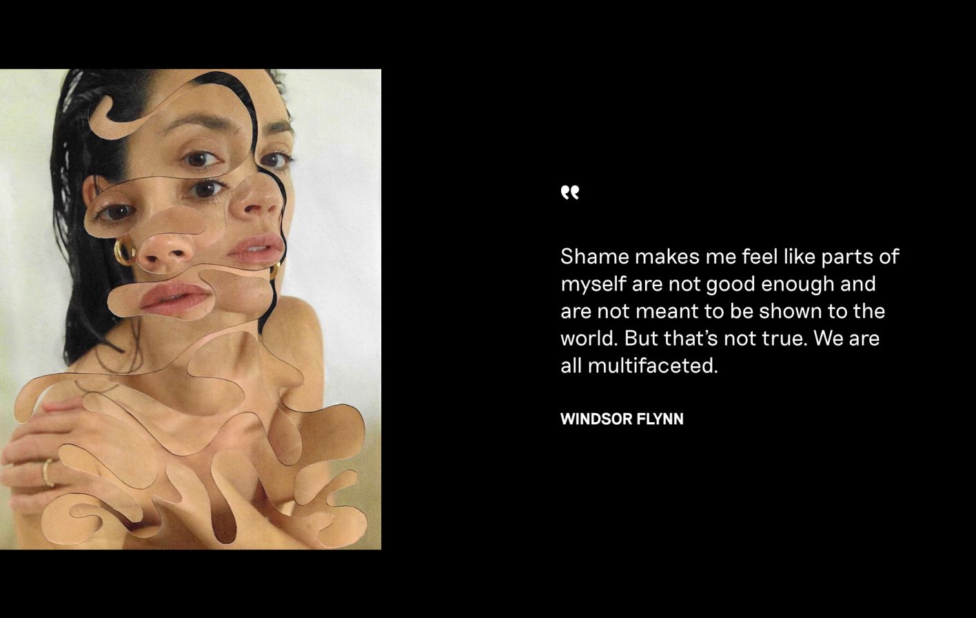 A partnership with artist Ian Woods explores the complex journey’s of four advocates — Crystal Anderson, Windsor Flynn, Jezz Chung and Jason Rosario — while testimonials from our community allow global sufferers to unpack the role shame has played in their life through the hashtag #ShameKeptMeFrom.