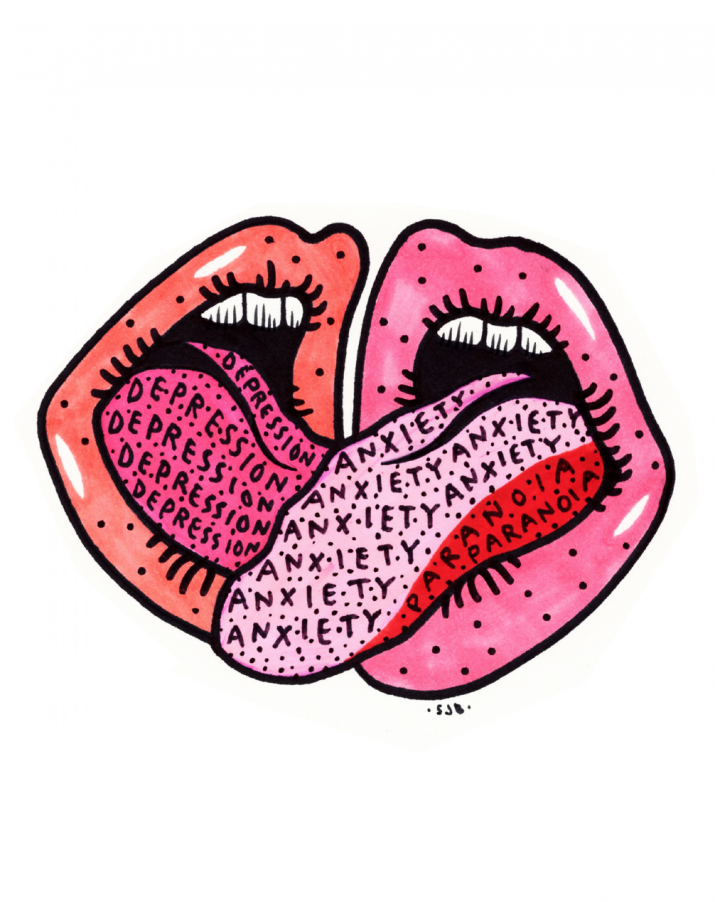 Anxiety-centric art often follows a similar format — dark colors, sad faces. Bernhardt’s takes a more creative spin on the experience of being trapped in your head, and in doing so, speaks to a broader population of mental health sufferers. Young people, like himself, who are searching for visualizations of their emotions that they can get excited about.